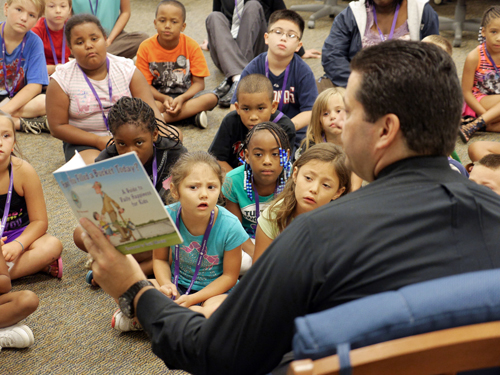 The Niagara Falls City School District students participating in Niagara University's primary enhancement program got a special treat Monday when the Rev. James J. Maher, C.M., NU president, read them "Have You Filled a Bucket Today? A Guide to Daily Happiness for Kids."