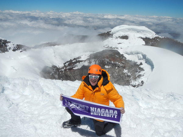 While many were reveling in the yearly celebration of America's birthday, a Niagara University assistant professor was climbing one of the world's tallest active volcanoes.