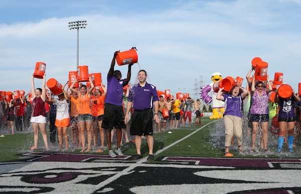 The Rev. James J. Maher, C.M., president of Niagara University, completed the "ALS Ice Bucket Challenge," along with a couple hundred NU students, at Niagara Field.