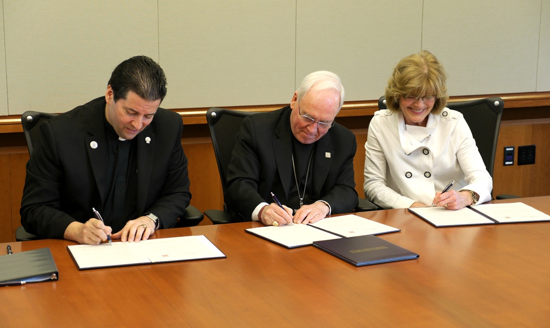 Niagara University, Niagara Catholic Jr./Sr. High School and the Catholic Diocese of Buffalo held a signing ceremony Friday to enter into a formal memorandum of understanding.