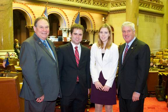 Assemblyman John Ceretto along with Assembly Minority Leader Brian Kolb welcomed Jason Cutler and Sarah Jensen, students at Niagara University, to the Assembly chambers on the opening day of the 2014 legislative session.
