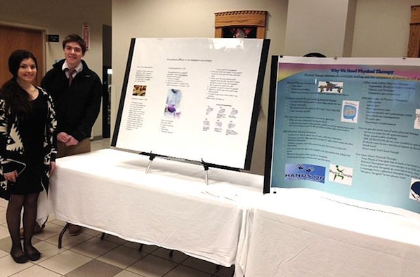 This year's "Pathways to Careers" internship partnership involving Mount St. Mary's, Niagara Catholic and Niagara University featured students Mackenzie Lozina and Ryan Prawel, both of NC. The pair is shown with the displays they created and exhibited in the hospital lobby as the final component of their project.