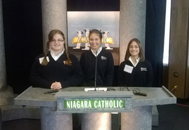 Niagara Catholic Jr./Sr. High School Senior students Danielle Rosini, Lauren Preti and Maria Sciarrino, pictured from left, recently represented the high school on the television show "It's Academic."