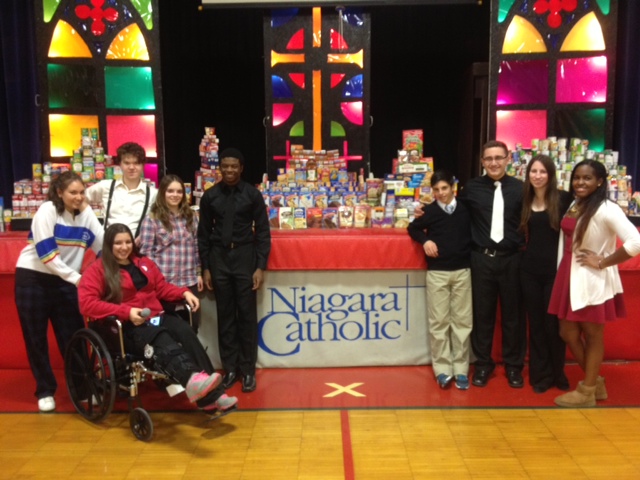 Niagara Catholic Students prepared for their Thanksgiving service on Tuesday, Nov. 26. Giving thanks for all that they have in their own lives, the faculty, staff and students collected enough food and turkeys to help 12 families and three local food pantries.