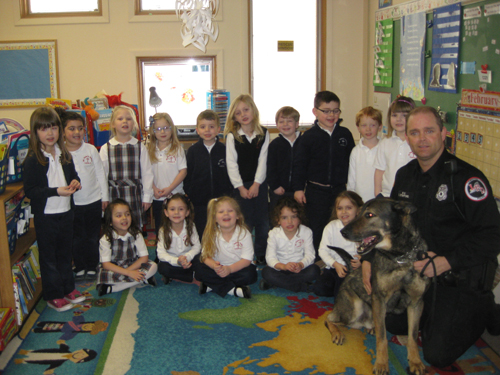 Lewiston Police Department officer Scott Stafford and his K-9, Radar, recently visited Miss Lemke's pre-kindergarten class at St. Peter R.C. School. The students learned about making healthy choices, and were excited to see Radar so well-trained.
