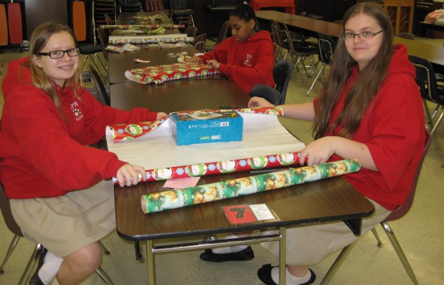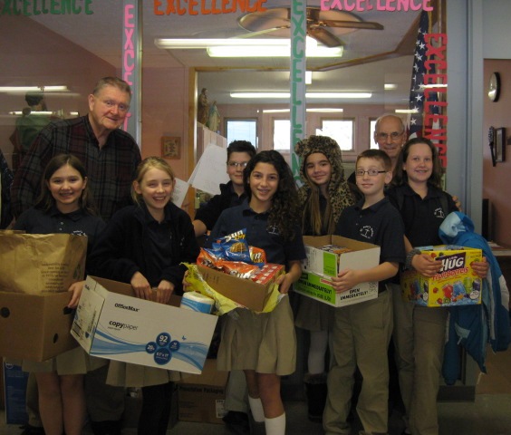 St. Peter R.C. School students in Lewiston decided to give back to families in need during the holiday season. Instead of exchanging gifts among themselves, the students decided to purchase new clothing and toys and household items for families in the area.