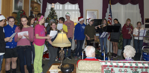 On Dec. 4, Starpoint Central School students, in collaboration with a handful of students from Sacred Heart Academy, visited the Sterling House Niagara, a senior living community in Wheatfield. The students brought with them 47 handmade fleece blankets, which they made for the residents over the past two months.