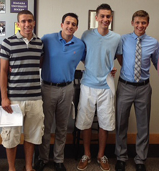 The Niagara Junior Purple Eagles Gary Hill Memorial Scholarship Committee has announced Mark Grozio, Antonio Guerrucci, Adam Stanczyk and Stephen Zafuto as the 2013 scholarship recipients.