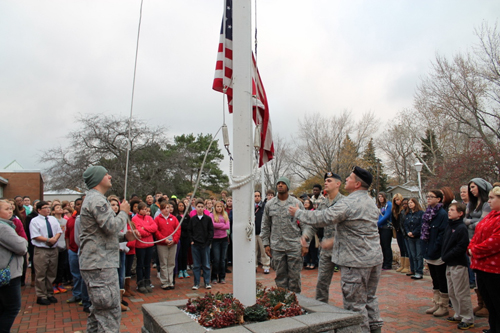 The Niagara Catholic Jr./Sr. High School community celebrated Veterans Day with a flag-raising ceremony conducted by members of the Niagara Falls Air Reserve 914th Airlift Wing.