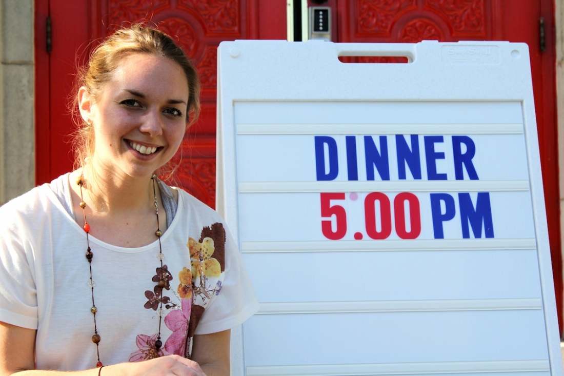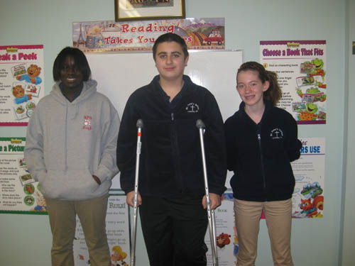 NU grad Kalani Personius and seniors Mary Gibson and Jessica Spellane work to help those in need at St. George's Church.