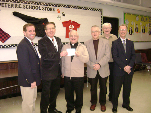 St. Peter's Holy Name Society was able to donate a total of $1,000 to the parish on Feb. 12, from its fundraising efforts selling snow cones, cold pop and bottled water during the Lewiston Art Festival.