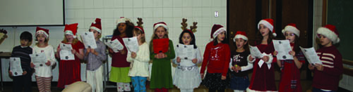 A group of third-graders performed several traditional Christmas carols and the entire room joined in on "We Wish You a Merry Christmas." Student carolers, under the direction of Nicole Mosier, included Elizabeth Teal, Maya Marcyan, Makenna Barrientos, Emma Sand, Nathan Rhodes, Olivia Naughton, Julia Thomas, Meghan Baio, Graciana Auer, Ciaran Edwards, Alexandra Lee, Ellie Phillips, Jaden Lombardo and Isabella Tolliano. Vicki Mehr accompanied.