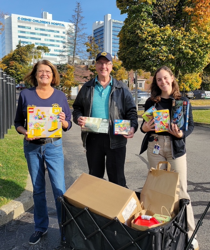 The Wheatfield Lions recently accepted a number of pediatric cancer Lego brick kits from Roswell Park Comprehensive Cancer Institute for distribution to area child cancer patents.