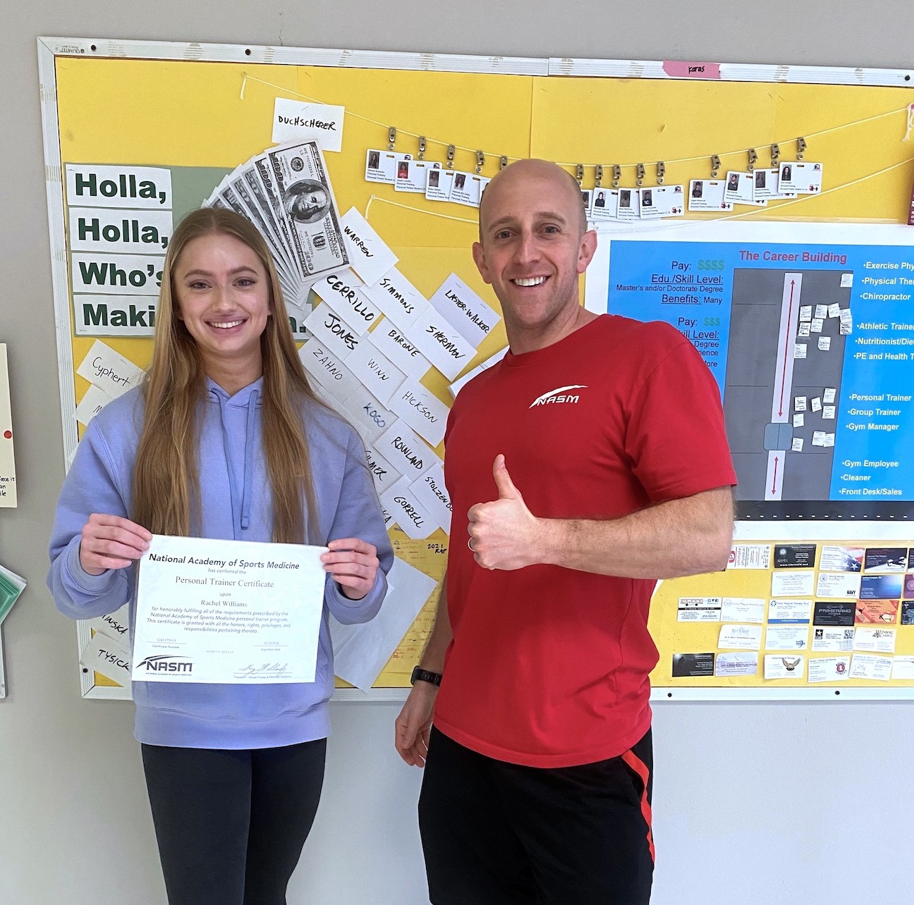 Rachel Williams from Lewiston-Porter High School has taken the certified personal trainer program at the Niagara Career and Technical Education Center for the past two years. This past January, she completed her personal training certification exam with the National Academy of Sports Medicine.