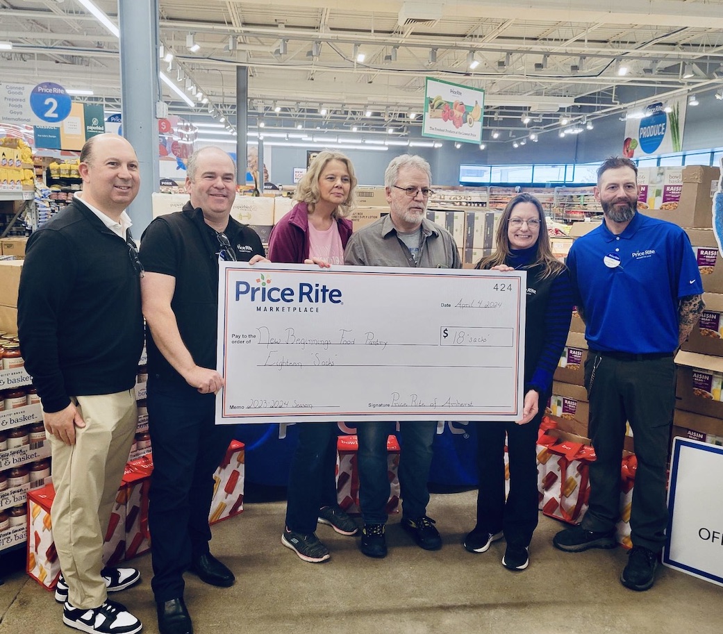 Price Rite Marketplace and the University at Buffalo football program donated 18 sacks of food to the New Beginnings Food Pantry at the Price Rite of Amherst on Thursday. The donation is a result of the organizations' annual "Sack Hunger" campaign, designed to help tackle food insecurity in the Amherst community.