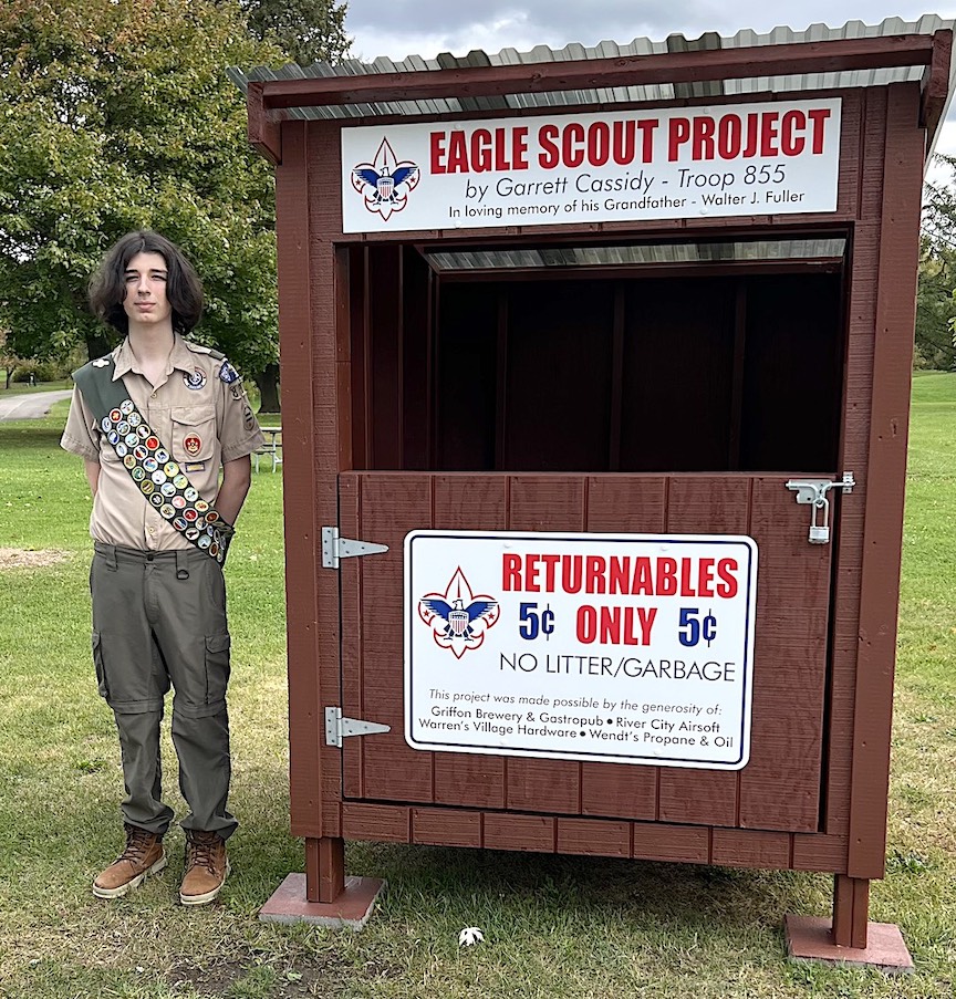 Garrett Cassidy recently completed his Eagle Scout project and shared it with the community. He built a bottle and can return station, which was placed at Four Mile Creek State Park on Sept. 30.