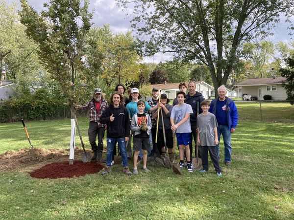 Gathering together in Lions Park on a day in early October, Lions from Youngstown and Lewiston were joined by Boy Scout Troop 829 and others who came out to plant trees to further develop the community park in the Village of Youngstown.