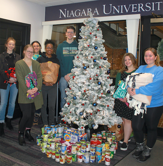 The holidays will be a little happier for those living on the margins of society, thanks to the students in Niagara University's Student Nurses Association. The group has been collecting canned goods, blankets, toiletries and personal hygiene products that it will donate to Community Missions of Niagara Frontier Inc. at the end of the semester.
