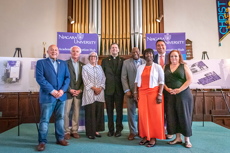The Rev. James J. Maher, C.M., president of Niagara University, announced that the university is in the process of purchasing the First Congregational Church, at 822 Cleveland Ave., in the bridge district of Niagara Falls.