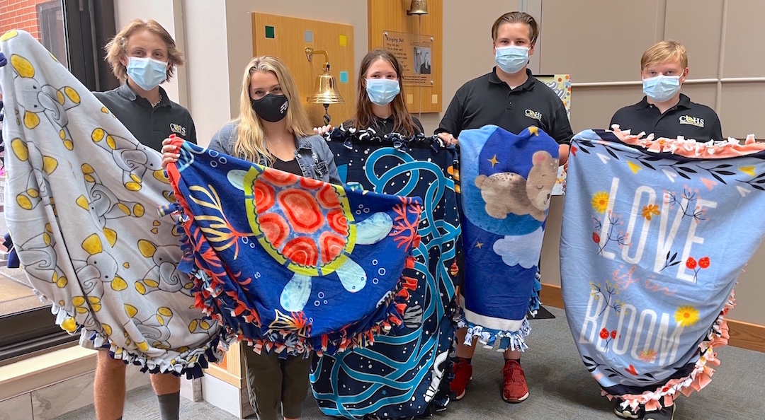 Students in the Good Samaritan Club at Cardinal O'Hara High School made fleece tie blankets for patients at Roswell Park Comprehensive Cancer Center. On June 7, some of the members, accompanied by their adviser, Renee Orr, delivered nearly 20 blankets to Roswell.