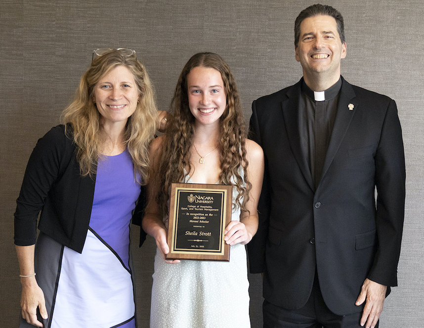 Sheila Strott, an incoming freshman in Niagara University's College of Hospitality, Sport and Tourism Management, is the 2022 recipient of the Merani scholarship, a collaboration between Niagara and the Merani Hotel Group to provide opportunities for high-level experiential learning in the hospitality industry. Strott, a Grand Island resident who graduated from Mount St. Mary Academy in June, will receive a four-year, $30,000 scholarship, and three paid rotating internships at Merani properties.