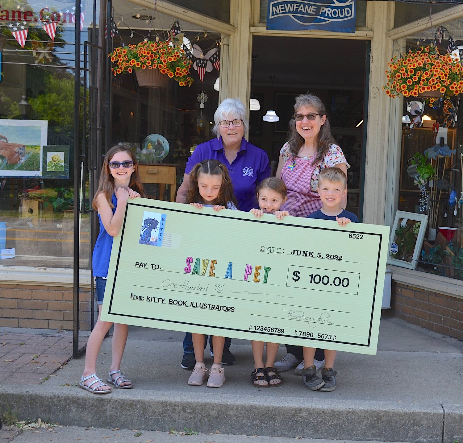 Seven of Lazy Creek Art's students, ranging from 6-9 years old, recently collaborated to create a self-published picture book titled "Kitty." On June 5, the young artists presented Save-A-Pet Niagara of Newfane with a $100 check from the initial proceeds from their publication.