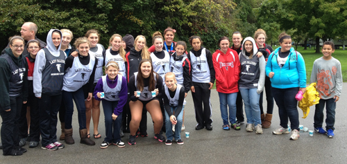 About 30 members of the Niagara-Wheatfield girls swimming and diving team volunteered their time the morning of Sept. 22 to assist in the Hospice Dash 5K Race and the Mighty Niagara Half Marathon in Youngstown.