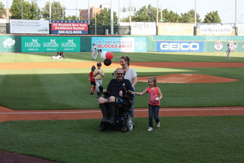 On June 26 at Coca-Cola Field in Buffalo, Chuck Thore of Harvey Road was the honorary PALS member (Person with ALS) at a Buffalo Bisons game, and got to throw out the first pitch of the game with the assistance of his wife Kristen, and step-daughter Sarah Brand.