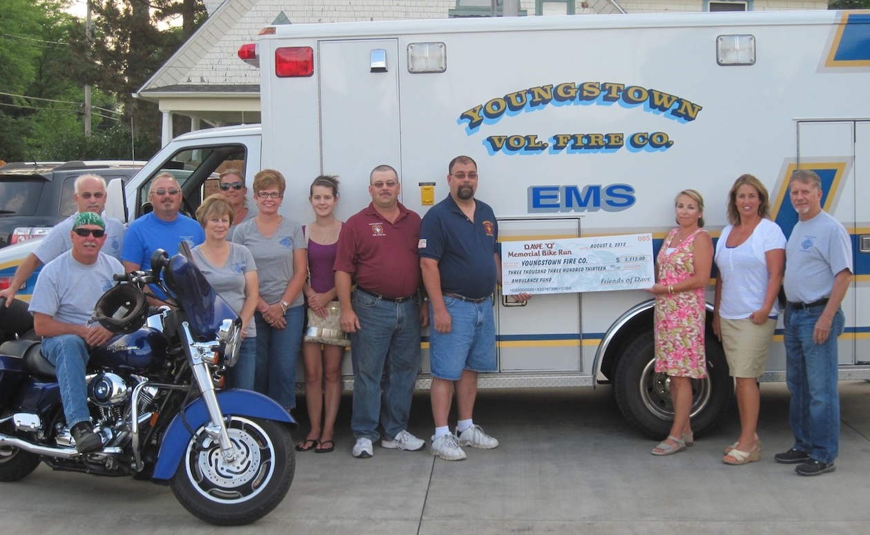 The sixth annual Dave's Memorial Dice Run benefit, held July 21, netted $3,313 for the Youngstown Volunteer Fire Co.'s "Ambulance Drive for Life."