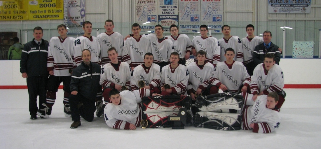 The NC Coyotes Midget 16U team followed a victory in the Gene Harrington Spring Classic Tournament at Hyde Park Arena with an incredible ride to the finals of the New York state championships.
