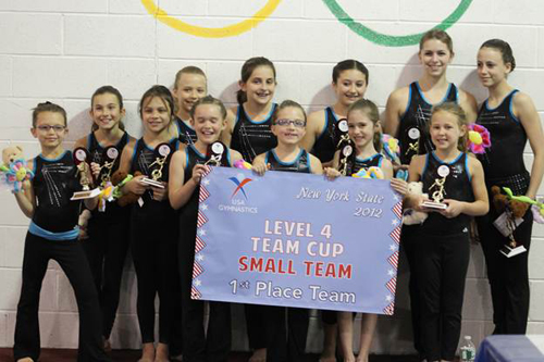 The level 4 gymnasts of Gleason's School of Gymnastics Niagara Team, pictured, competed at the Team Cup in Syracuse, the last meet of the 2011-12 season.