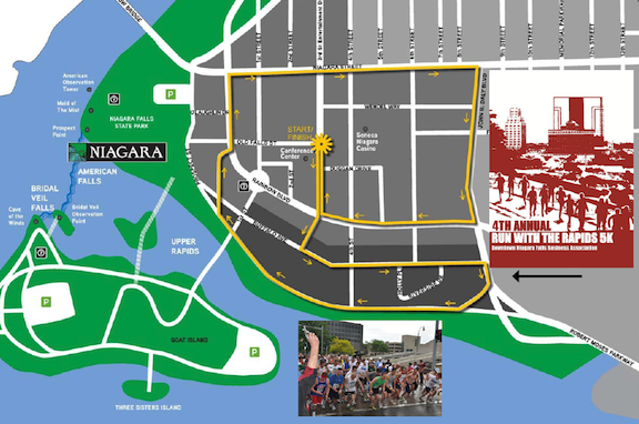 The fourth annual "Run with the Rapids 5K Run/Walk" will be held on Saturday, May 19, in downtown Niagara Falls. This USA Track & Field-sanctioned race benefits the Downtown Niagara Falls Business Association.