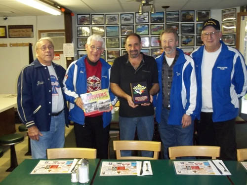 Members of FOAR SCORE, the oldest race fan club in America, presented a plaque to Salisa's All American Diner in Wheatfield.