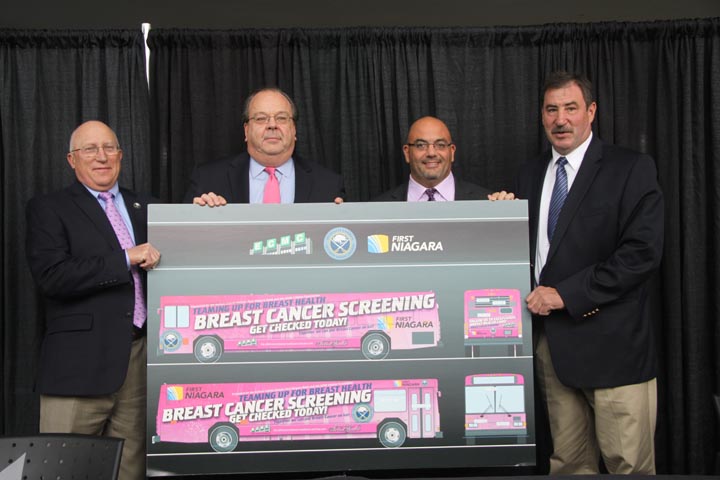 Sabres, ECMC, First Niagara join forces to purchase breast cancer prevention and education bus.