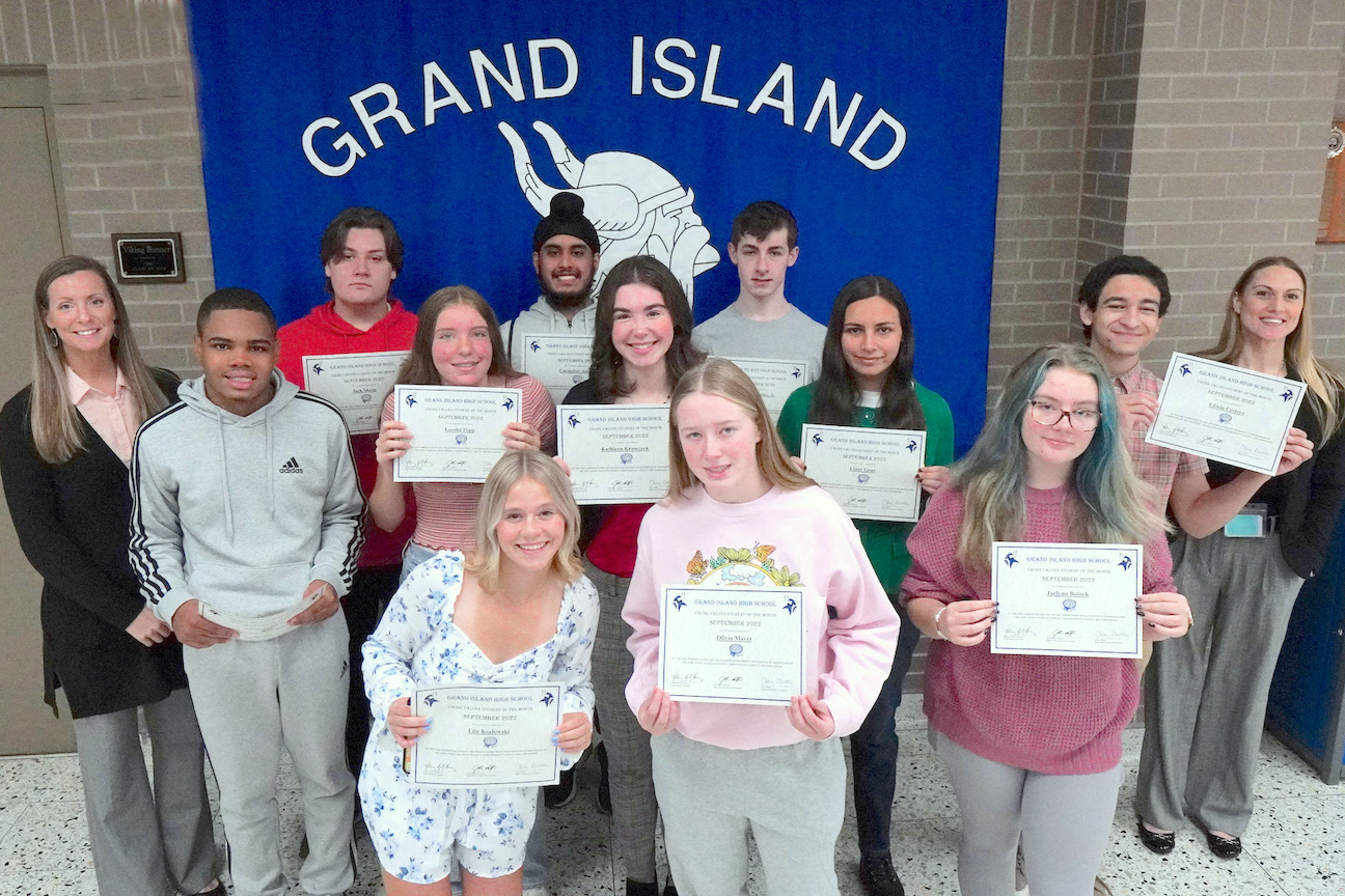 Principal Hillary Kretz-Harvey, Assistant Principal Jon Lattanzio, and Dean of Students Clare Battle of Grand Island High School announced the Viking Values Students of the Month for September.