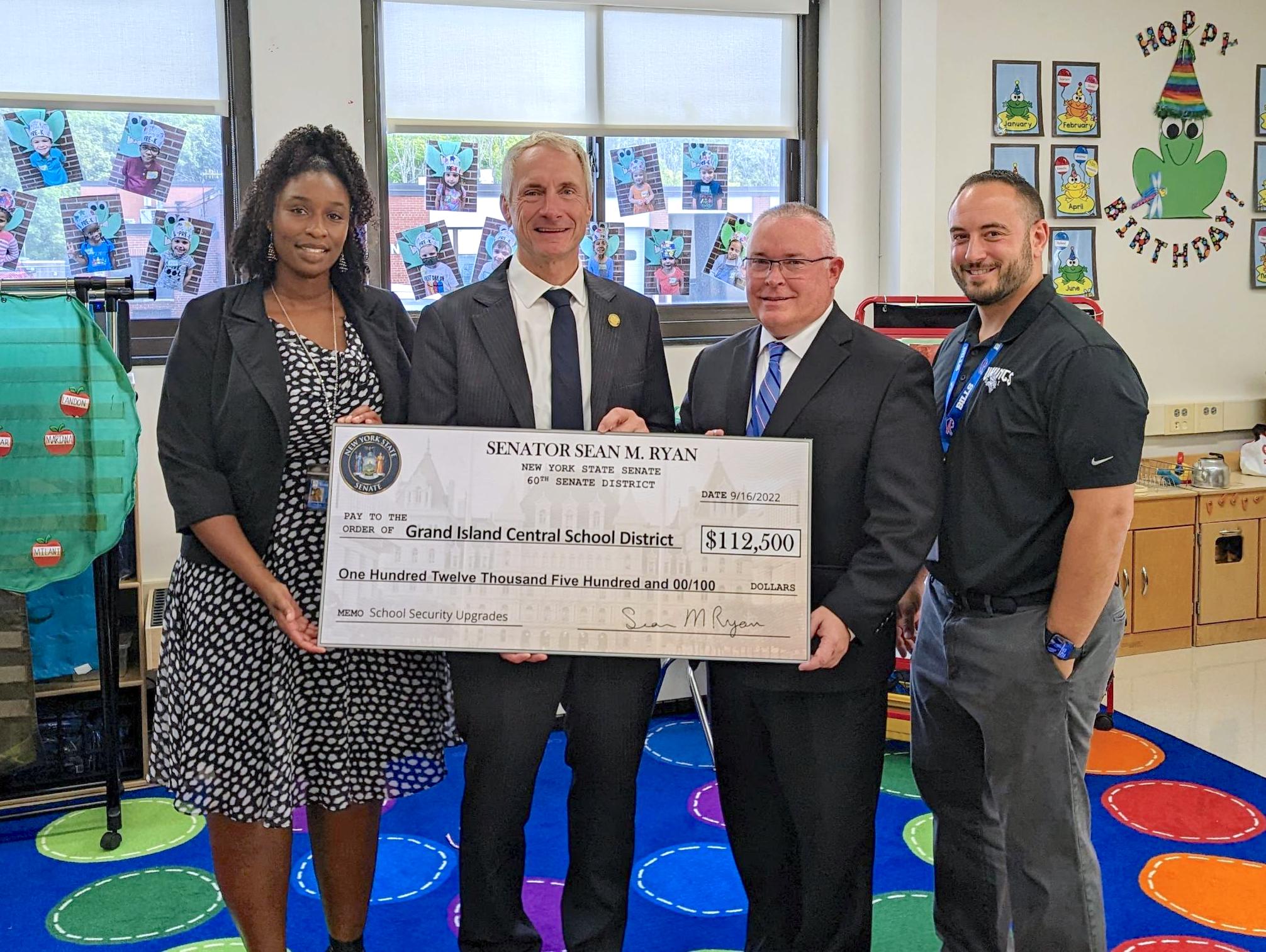 On Friday, New York State Sen. Sean Ryan joined school officials to announce $138,000 in security improvements being made to schools in the Grand Island Central School District. Ryan secured a $112,500 New York State grant to fund the bulk of the cost of the improvements.