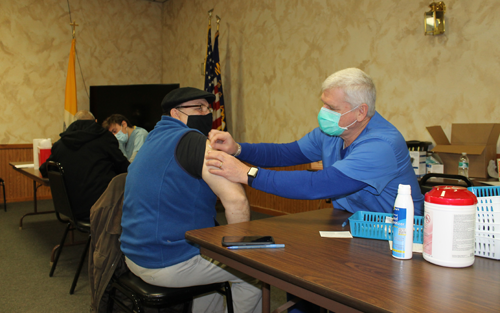 While the prospect of an injection is not usually a happy occasion, the administering of COVID-19 shots at the Knights of Columbus Hall on Wednesday was, for some, a cause to celebrate.