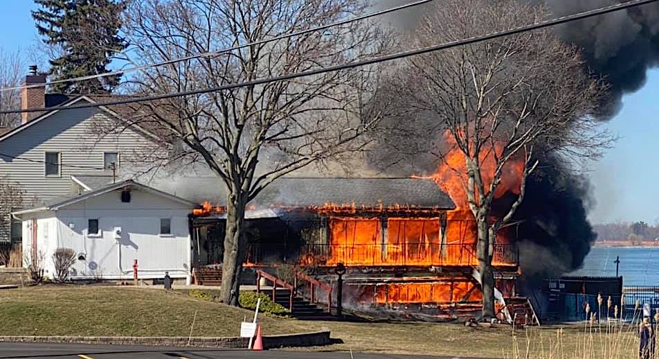 Members resolved to rebuild, after fire tore through the Niagara Sailing Club, at 3619 E. River Road, on Saturday. The Grand Island club's flag was spared, and later hoisted up alongside the American flag.