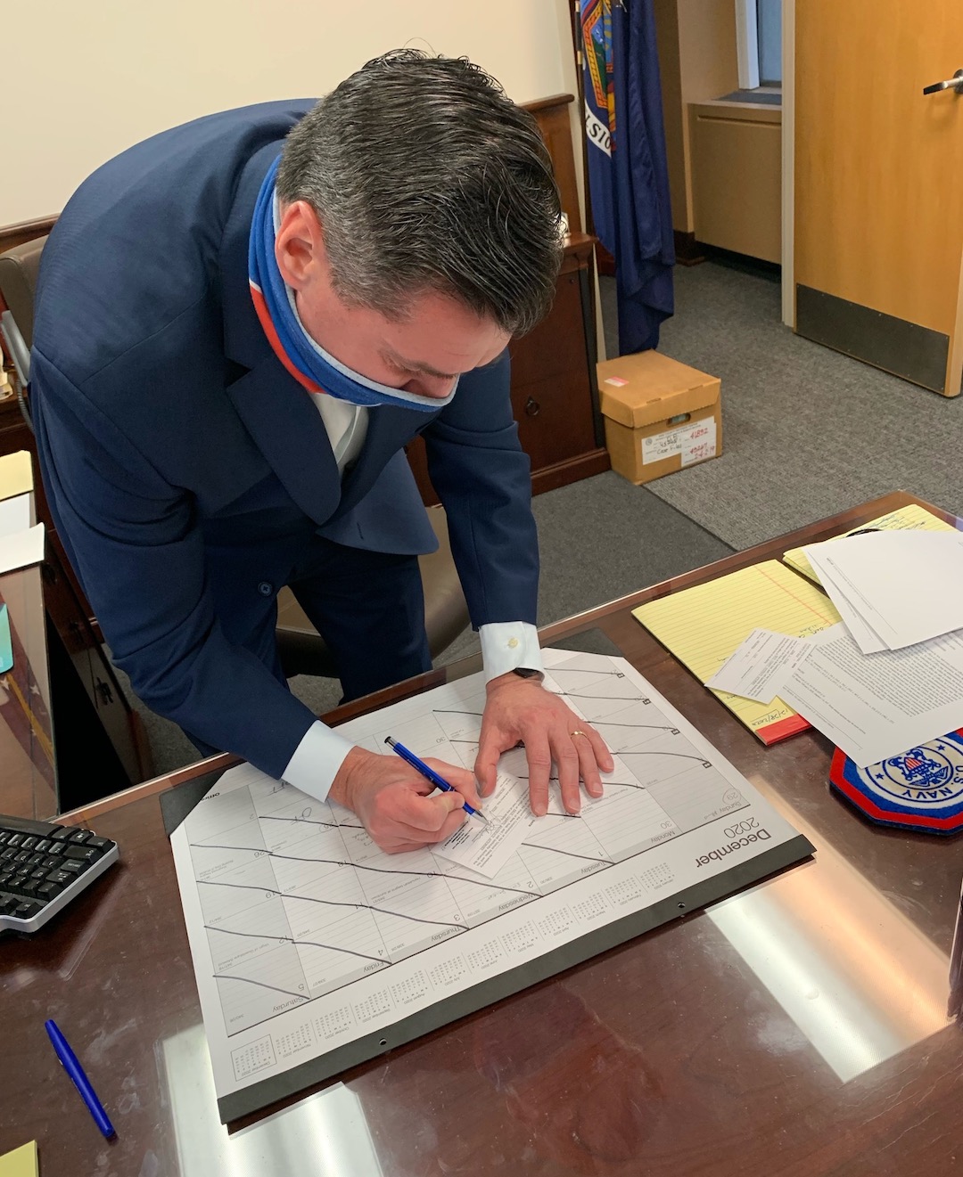 On Monday, Erie County Executive Mark Poloncarz took part in early voting for the 2020 presidential election, casting his ballot at St. Columba-Brigid Church on Hickory Street in the City of Buffalo's Ellicott District.