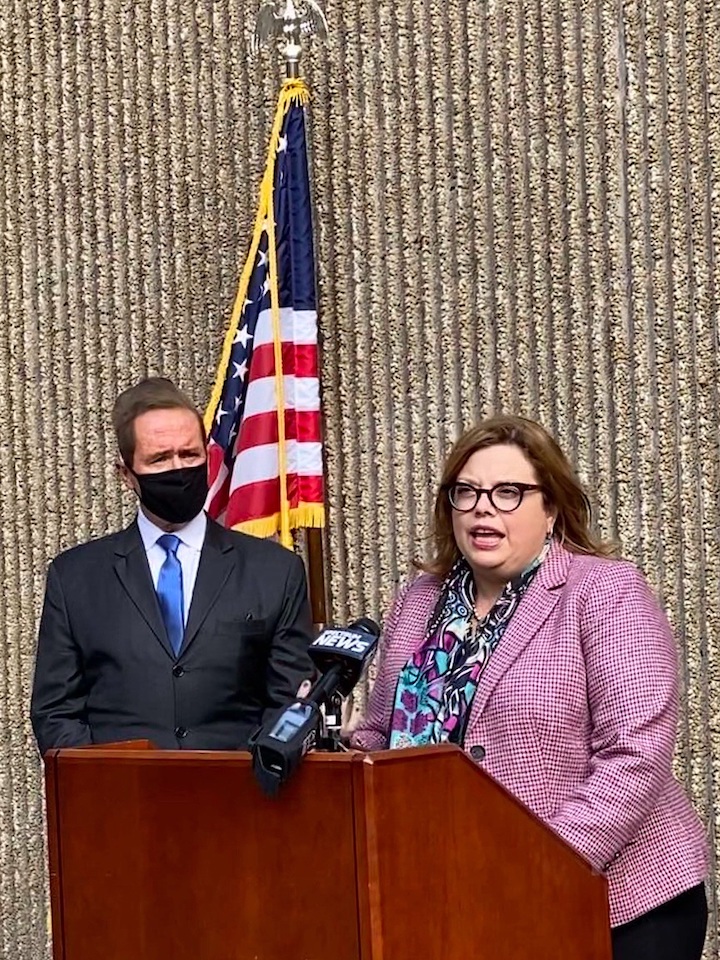 Congressman Brian Higgins, D-NY-26, and Buffalo City Court judge the Hon. Amy Martoche were joined by Evergreen Health, Via Evaluation and the Erie County Department of Health to announce a federal grant totaling $527,112 to provide new, innovative court-based trauma intervention to human trafficking survivors who are justice-involved.