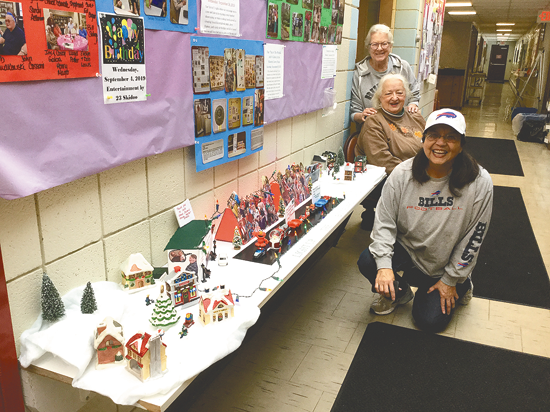 In support of the annual Light Up the Boulevard parade and festival, several Golden Age Center members have created a miniature replica of this event. Members who helped make this indoor version are, pictured, standing: Pat Ehinger, sitting: Lorraine Wilcox, kneeling: Anna Vaccaro.