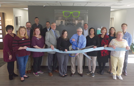 Members of the Grand Island Chamber of Commerce held a ribbon-cutting ceremony last week for the new location of Grand Island Optical.