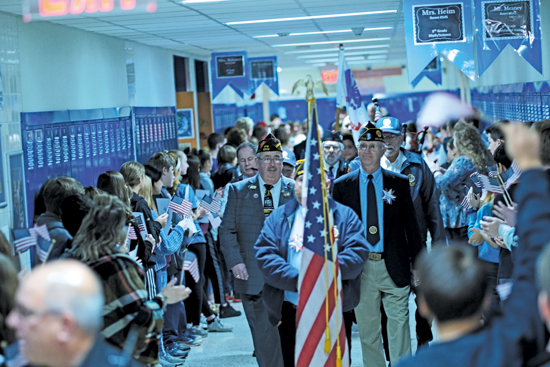 Island veterans paraded through the halls of the Grand Island High School and Veronica Connor Middle School Thursday to the applause and thanks of Island schoolchildren in the third annual Veterans Parade.