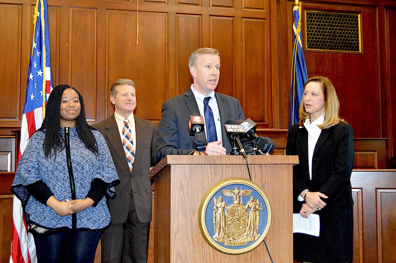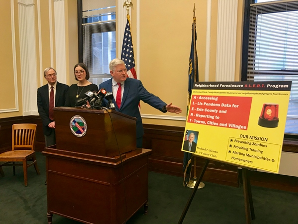 Erie County Clerk Mickey Kearns and the Western New York Law Center on Wednesday announced a groundbreaking new partnership with Columbia Law School to help Erie County municipalities track and monitor zombie foreclosures.