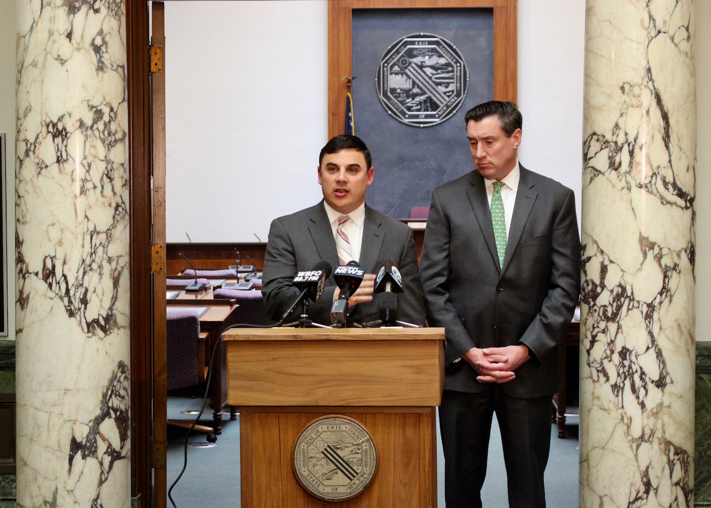 Erie County Legislature Chairman Peter J. Savage III was joined by Erie County District Attorney John J. Flynn to announce his support for passage of the Child Victims Act. The bill would empower survivors of childhood sexual abuse to confront their abusers as adults, and provide law enforcement with the means to bring child predators to justice.