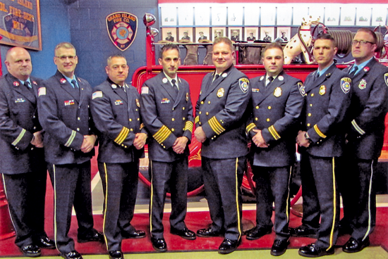 New York State Assemblyman Angelo Morinello administered the oath of office to newly elected Grand Island Fire Co. officers on Saturday, Jan. 13, at fire headquarters, 2275 Baseline Road. Both firematic and administrative officers were sworn to uphold their 2018 community protection duties. Honored guests and family members joined in praising the steadfast commitment of these volunteers.