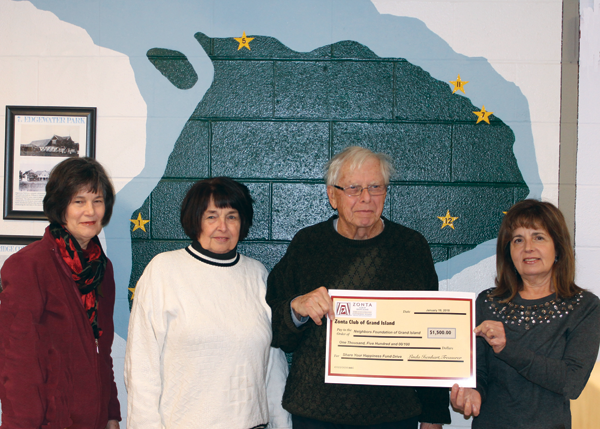 The Zonta Club of Grand Island presented a check for $1,500 to the Neighbors Foundation of Grand Island's "Share Your Happiness" fund drive on Jan. 18 at Town Hall. From left are Zonta President Karen Keefe, Neighbors Foundation member Ann Dahl, Neighbor's Foundation President Henry Kammerer and Zonta Treasurer Linda Isenhart.