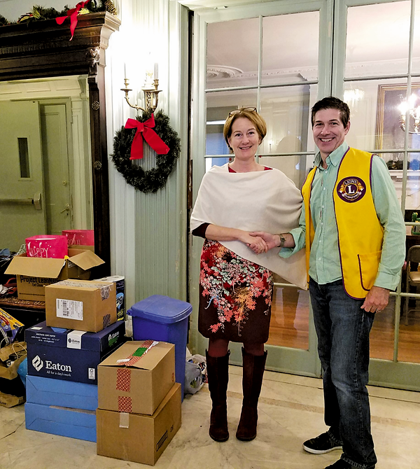 Grand Island Lions members brought donations for the Neighbors Foundation of Grand Island and the International Institute of Buffalo when they attended their annual Christmas Party on Dec. 14 at the Buffalo Launch Club.