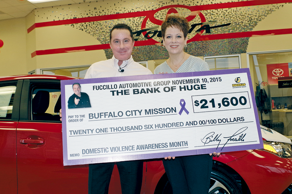 Fuccillo Automotive Group, which has three of its 23 dealerships located on Grand Island at Alvin Road, presented a check for $21,600 to the Buffalo City Mission to combat domestic violence in the community.