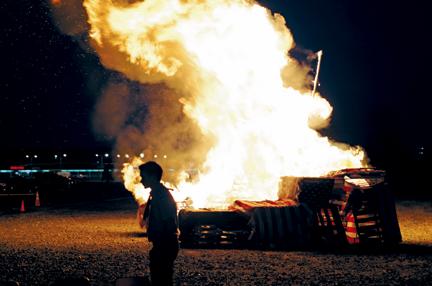 A new Veterans Day tradition on the Island began Wednesday with more than 100 attendees witnessing hundreds of flags retired to the flames.